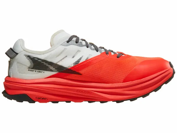 Say Bonjour to our speediest trail shoe to date! With a full-length carbon fiber plate, upgraded midsole, and sticky outsole, it's ready for fast technical terrain. Toe the starting line of your next trail ultra or set out on all-day up and downs with confidence and speed. It's got many of the original Mont Blanc features, but we added a full-length Carbitex Monoflex carbon plate for extra propulsion, underfoot protection, and stability on all terrain. Crafted with a lightweight and responsive midsole with rim and core construction. Snag some comfort with Altra EGO MAX in the rim and get enhanced race-day performance with Altra EGO PRO in the core. With Vibram Litebase to reduce outsole weight and Vibram Megagrip for unparalleled grip on both wet and dry surfaces, you've got help sticking it to any trail. Featuring a roomy toe box with plenty of space for your toes to move freely, a secure midfoot, and zero drop, so you can move naturally. Who said road shoes get all the speed? Send it on the trail with the Mont Blanc Carbon!