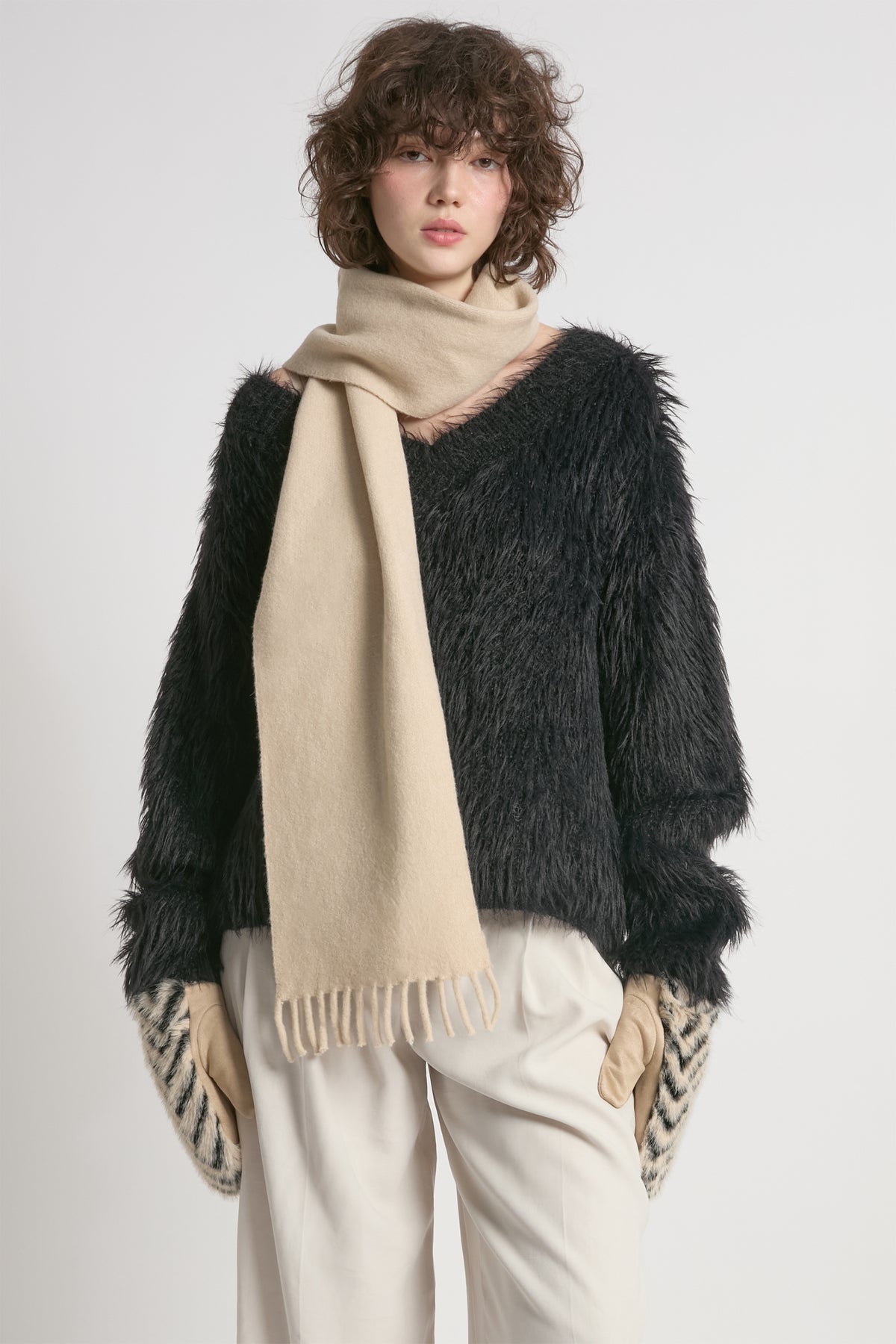 Petite wool-blend scarf with fringe details