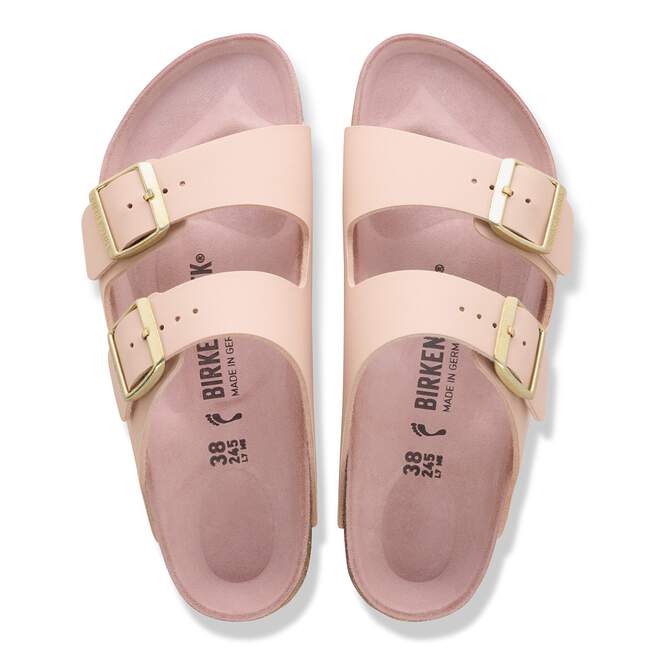 Keywords: Birkenstock Arizona Women's, Birko-Flor synthetic leather, suede footbed lining, cork-latex footbed, anatomical arch support, adjustable two-strap sandals, shock-absorbing EVA sole, German-made footwear, skin-friendly material, tear-resistant upper, classic comfort sandals, orthopedic slide sandals, timeless summer footwear, moisture-wicking footbed, lightweight durable sandals.