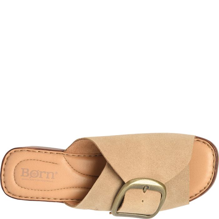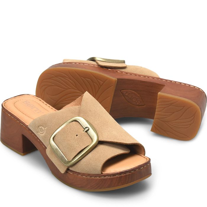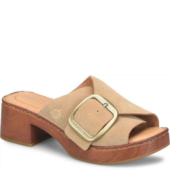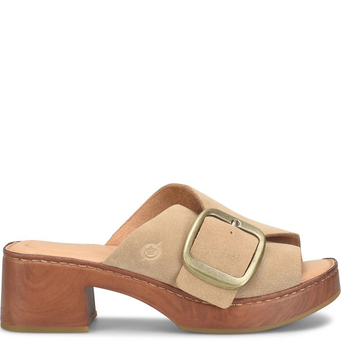 Styled with a statement buckle and woodgrain-inspired platform, our Bangle slide is a refined modern clog in sleek suede.